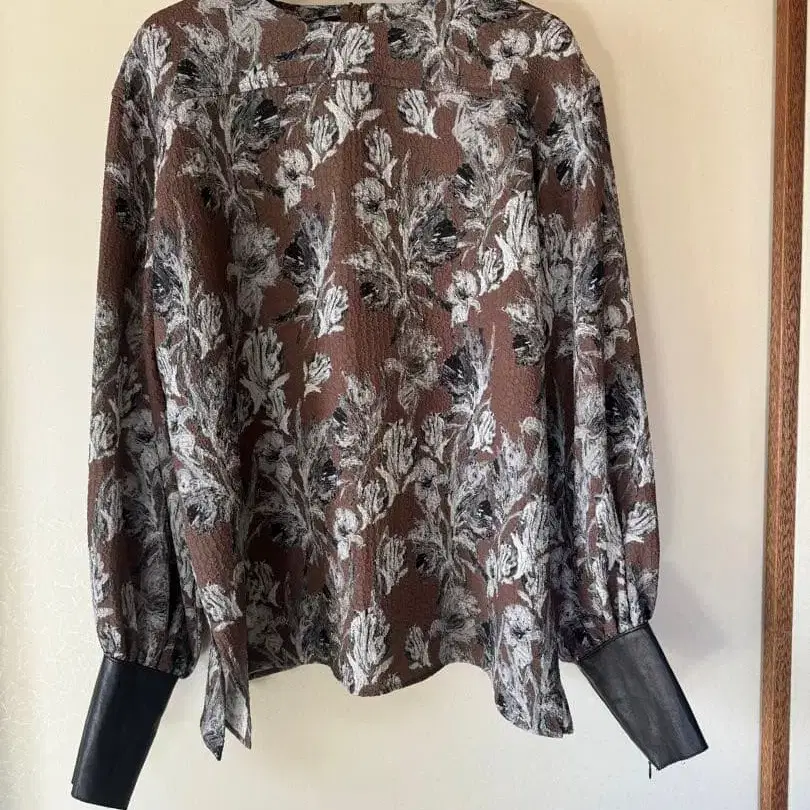 Setsuko Nakajima 꽃무늬 긴팔 블라우스 가죽풍 소매