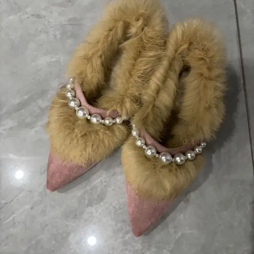 퍼 장식 펄 비즈 스틸레토 펌프스
