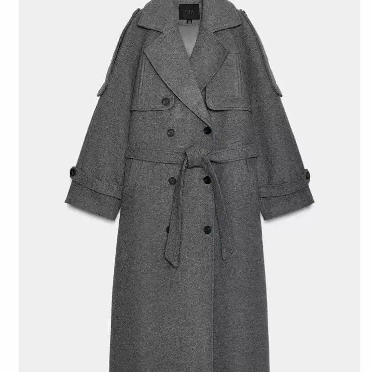 ZARA 더블 브레스트 코트 벨트와 루프 포함 L