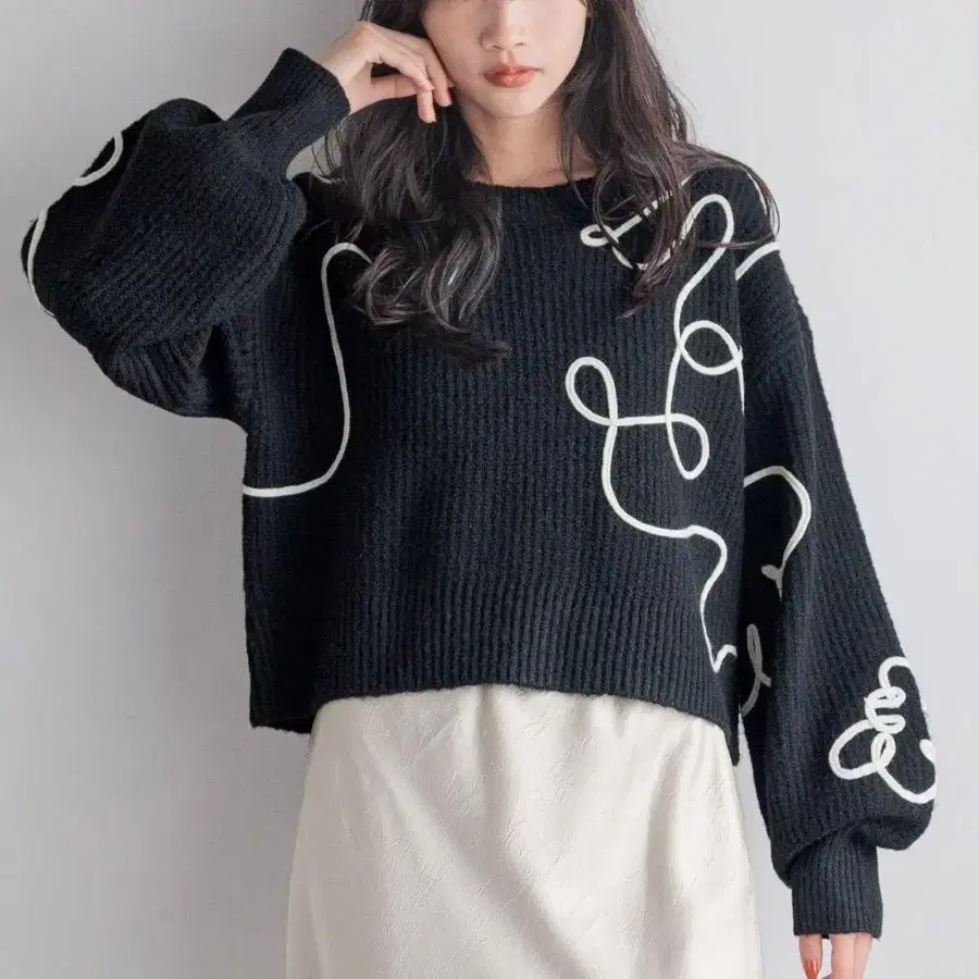 LOWRYS FARM 자수 풀오버 LS 블랙