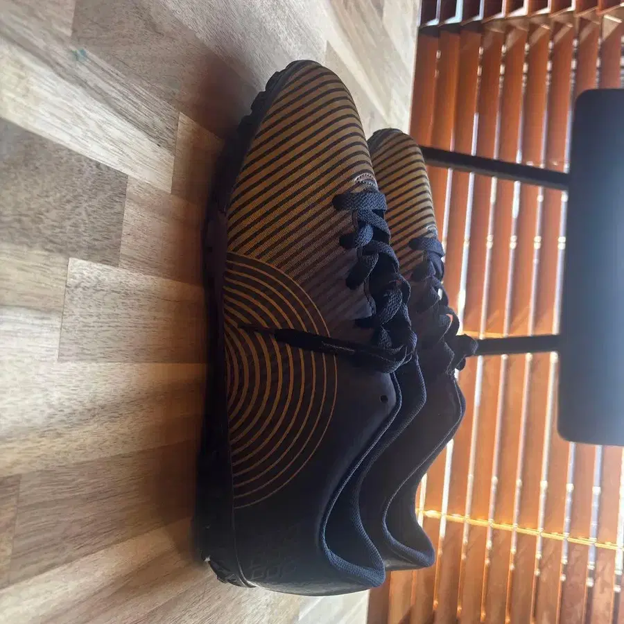 축구 트레이닝 슈즈 블랙/골드 스트라이프 디자인