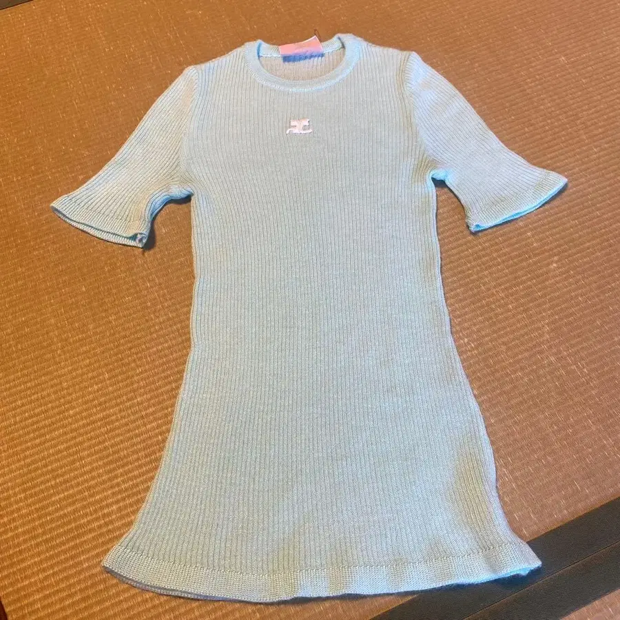 쿠레쥬 반팔 니트 리브 라이트 블루