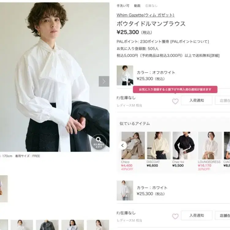 새상품급 윔 가젯 보타이 돌먼 블라우스 화이트 정가 25,300엔