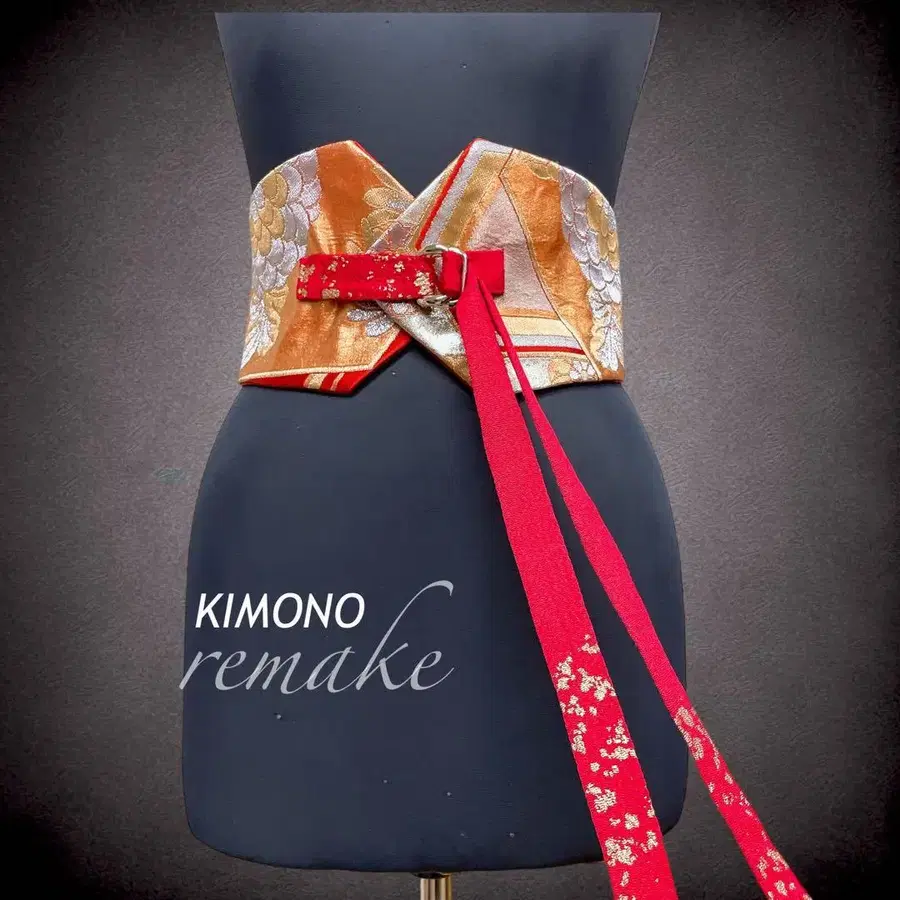 빨간색 금 자수 새시 벨트 W60~90cm 기모노 리메이크 J71220