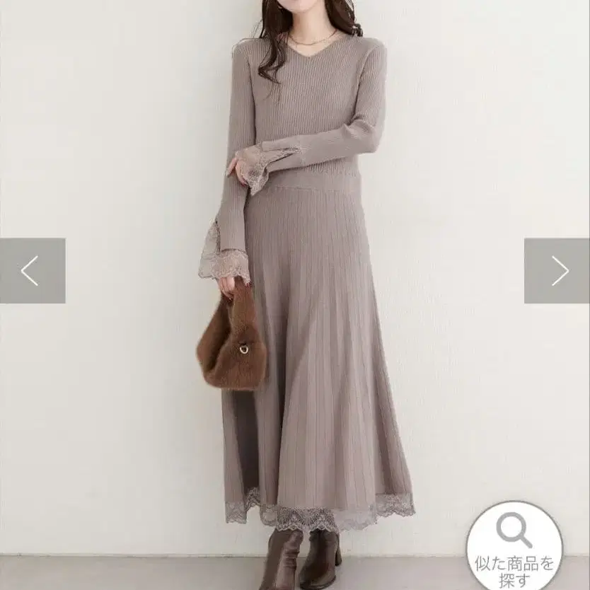 natural couture 소매 레이스 니트 원피스 FREE 모카