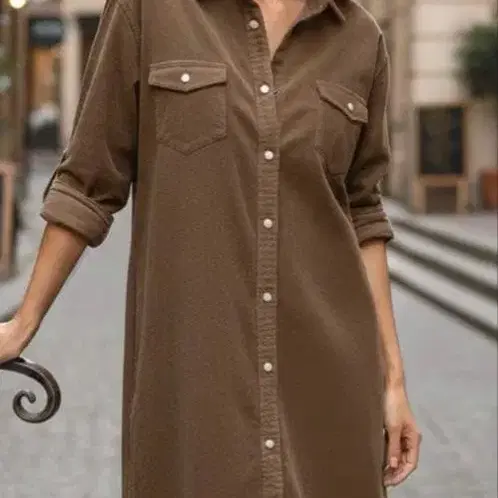 23구 코듀로이 셔츠 원피스 브라운 카멜 38 M