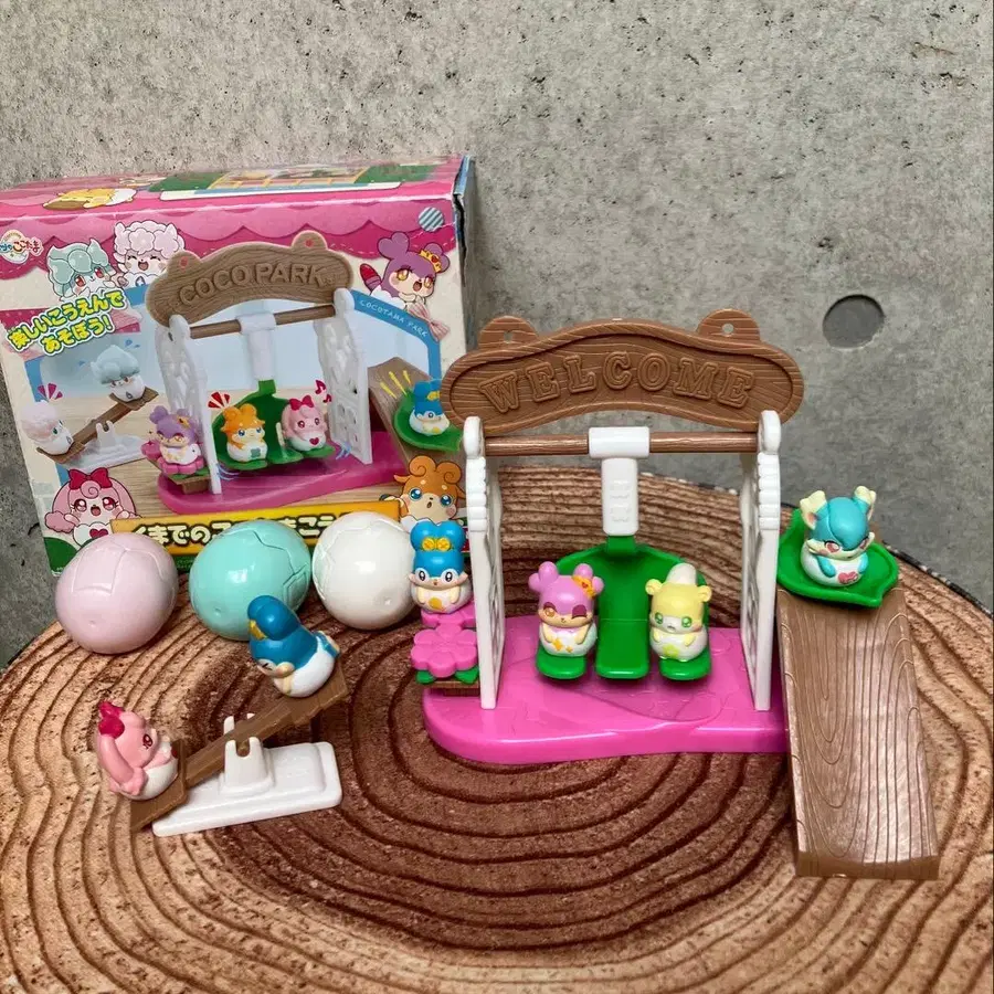 비밀의 코코타마에서 곰 코코타마 공원이 등장! 공원을 동경하는 코코타마들을 위해 만든, 놀이기구 놀이를 할 수 있는 세트. 곰의 그네, 나무 미끄럼틀 & 나뭇잎 썰매, 시소 등으로 놀 수 있습니다. 본체의 받침대는 비치 샌들 모양으로, 극중에서 손재주 좋은 코코로가 열심히 만든 특징적인 디자인을 재현했습니다.