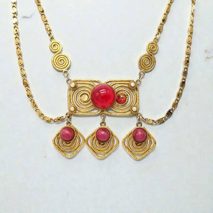 칼 라거펠트 롱 목걸이 레드 카보숑 소용돌이 빈티지