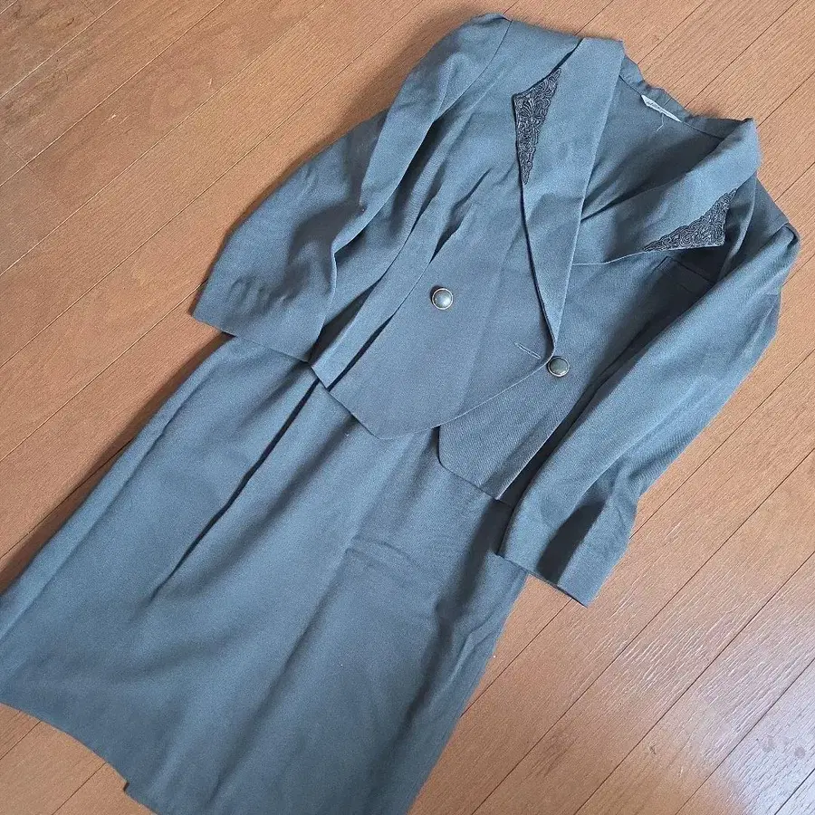 여성 수트 상하의 카키 더블 브레스트 자켓 레이스 포함