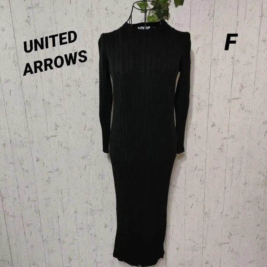 [ UNITED ARROWS ] 블랙 리브 니트 롱 원피스 쿨넥