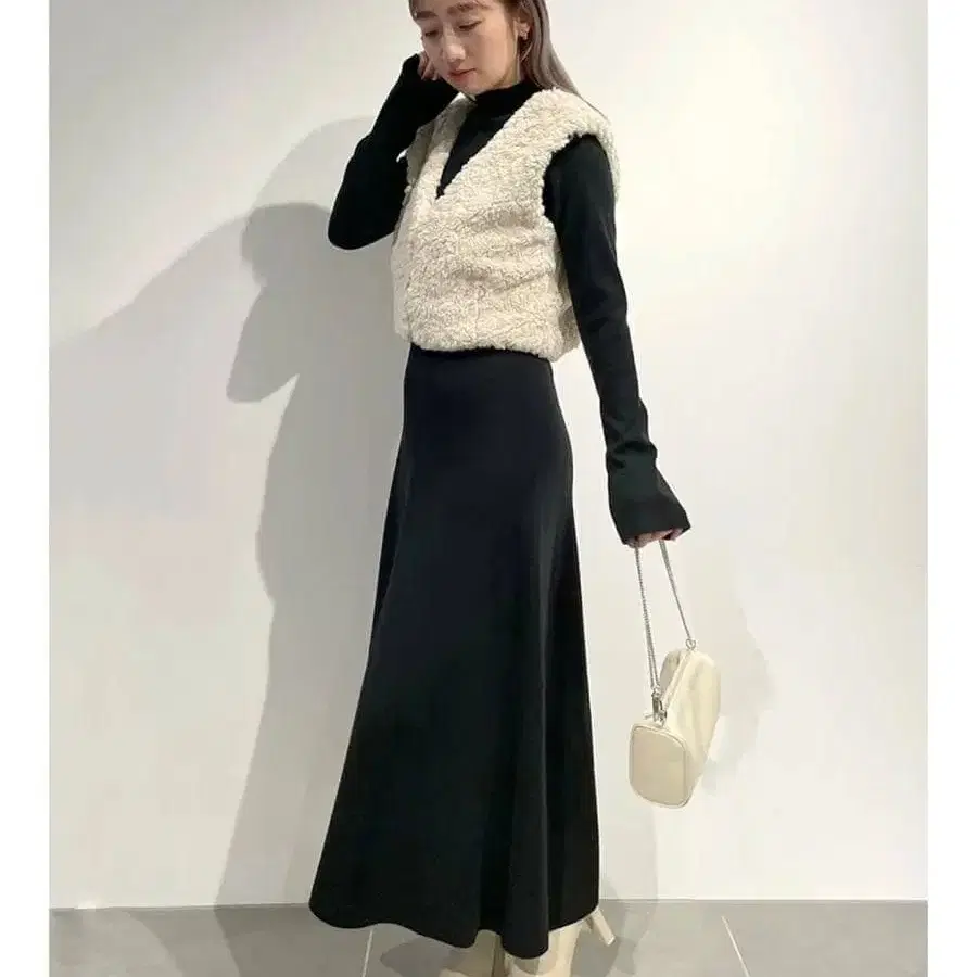 SNIDEL 퍼 베스트 세트 니트 원피스 블랙