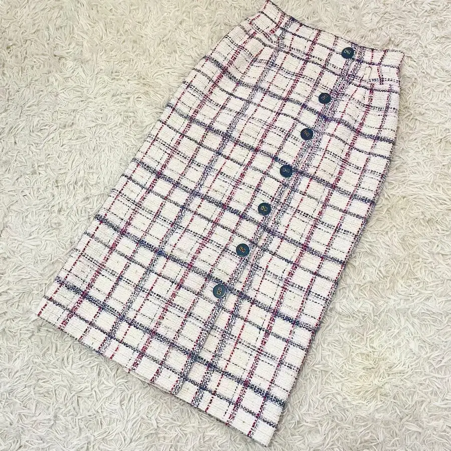 eimyistoir 트위드 체크 무늬 롱 타이트 스커트 화이트 M