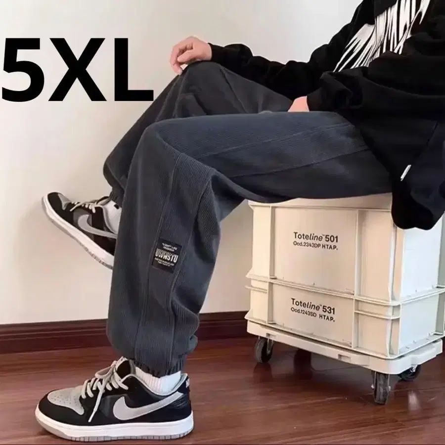 자동 번역되었어요. 원문보기코듀로이 소재의 다크 그레이 이지 팬츠, 허리밴딩과 드로우 스트링으로 편안한 착용감. 미사용 새상품