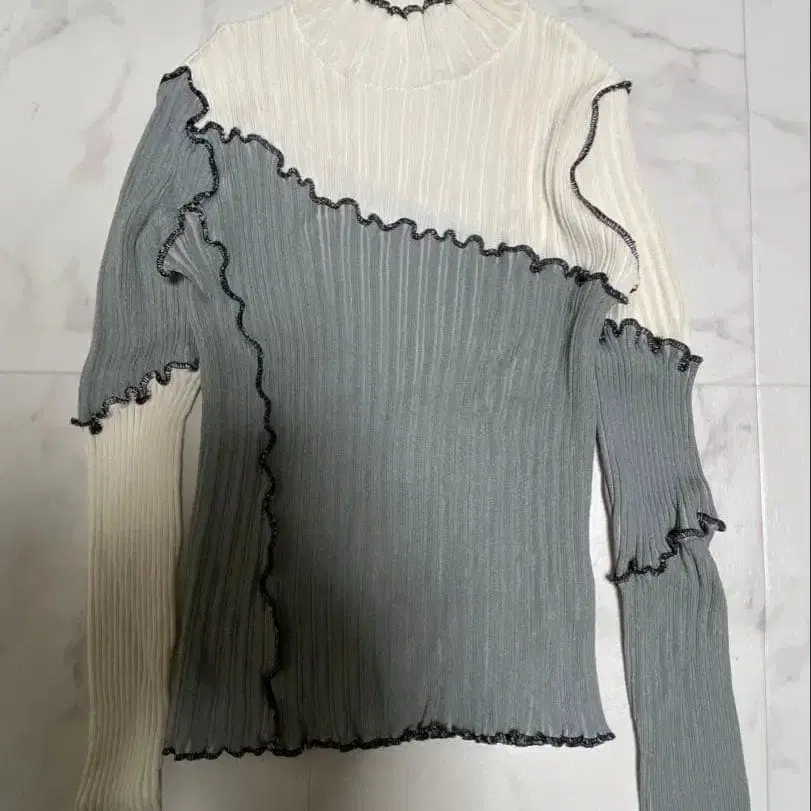 퍼블릭 도쿄 PUBLIC TOKYO 웨이브 스티치 리브 니트