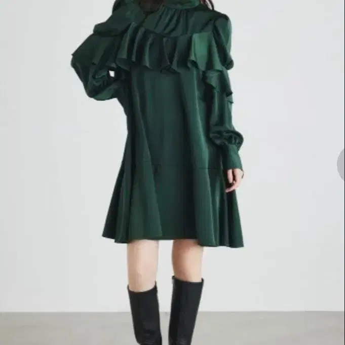 rienda 새틴 프릴 하이넥 미니 원피스