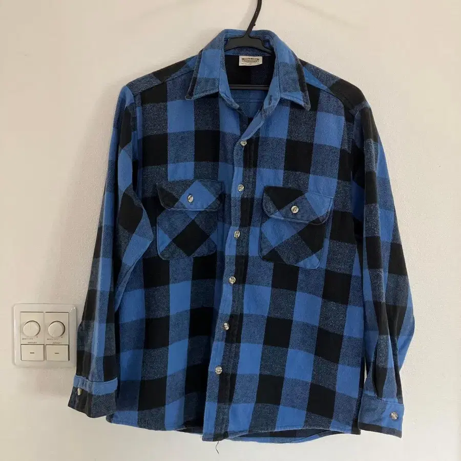 파이브 브라더 긴팔 플란넬 셔츠 M 파랑 블랙 블록 체크