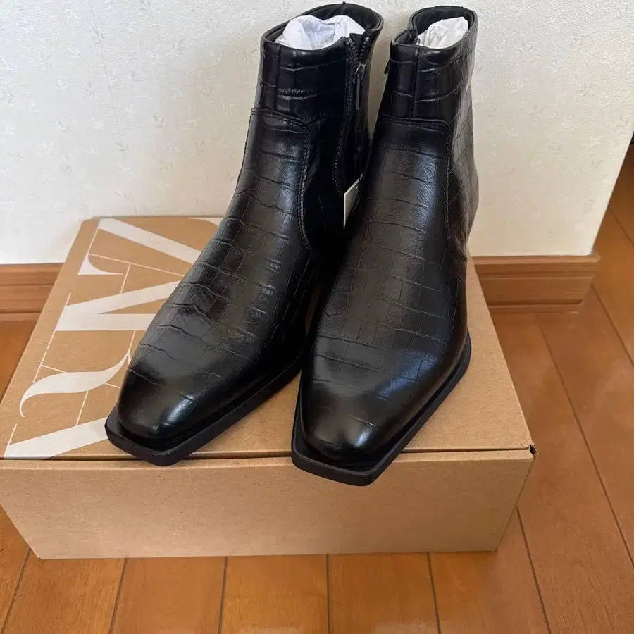 ZARA 크로커다일 무늬 블랙 사이드 고어 부츠