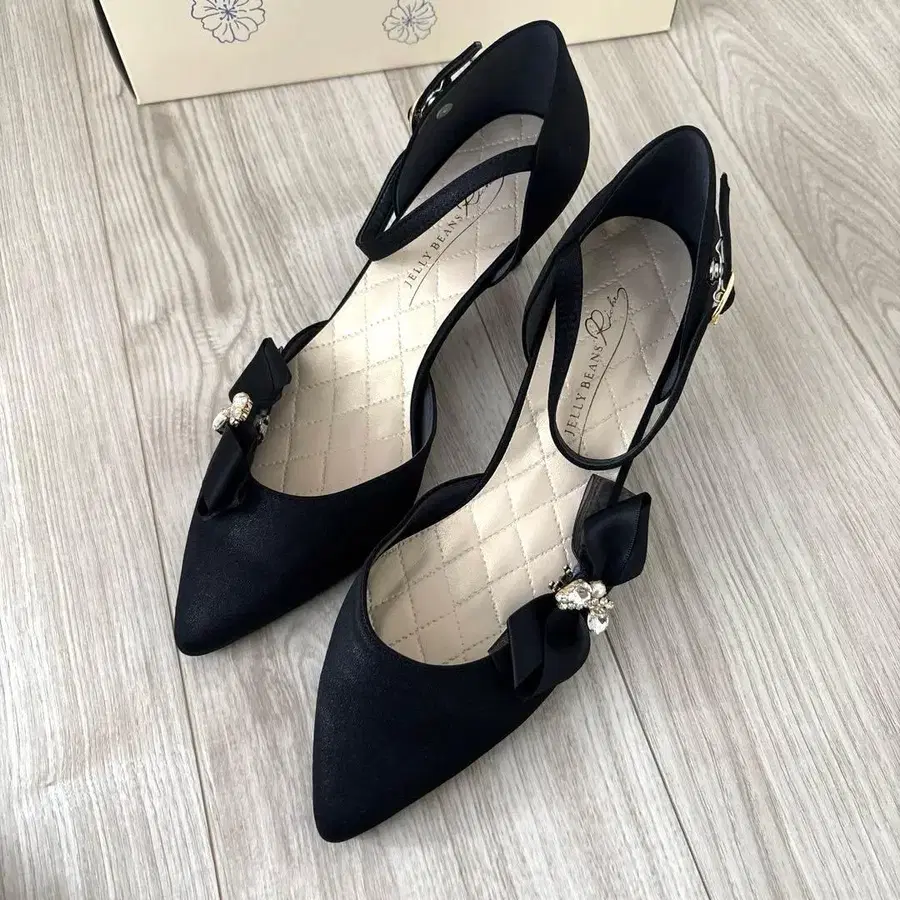 JELLY BEANS 블랙 펌프스 리본 비쥬 결혼식 입학식 졸업식