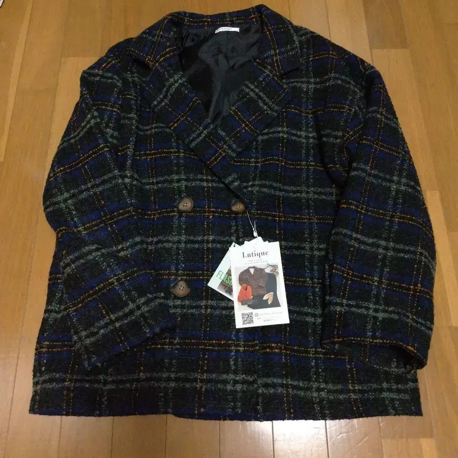 미사용 새상품 Lutique 체크 무늬 더블 브레스트 자켓