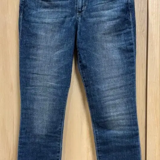 다크 블루 스키니 데님, 앵클 기장으로 스타일리시합니다.
