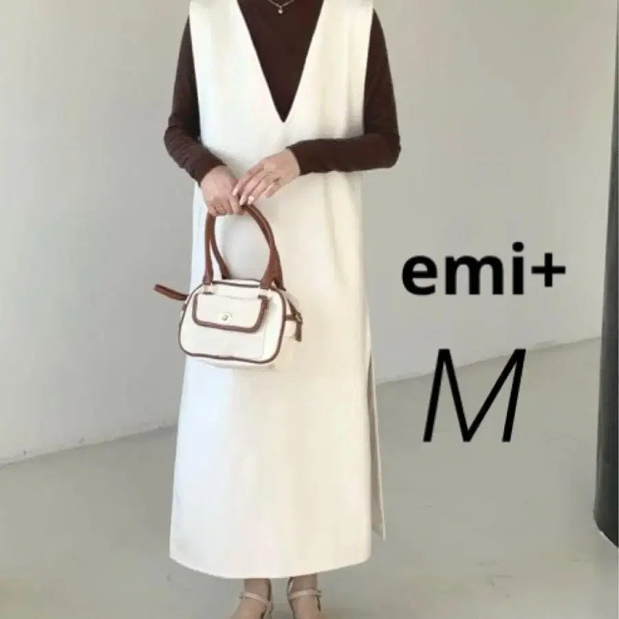 에미+ V넥 슬리브리스 슬릿 원피스 점프 스커트 M 화이트