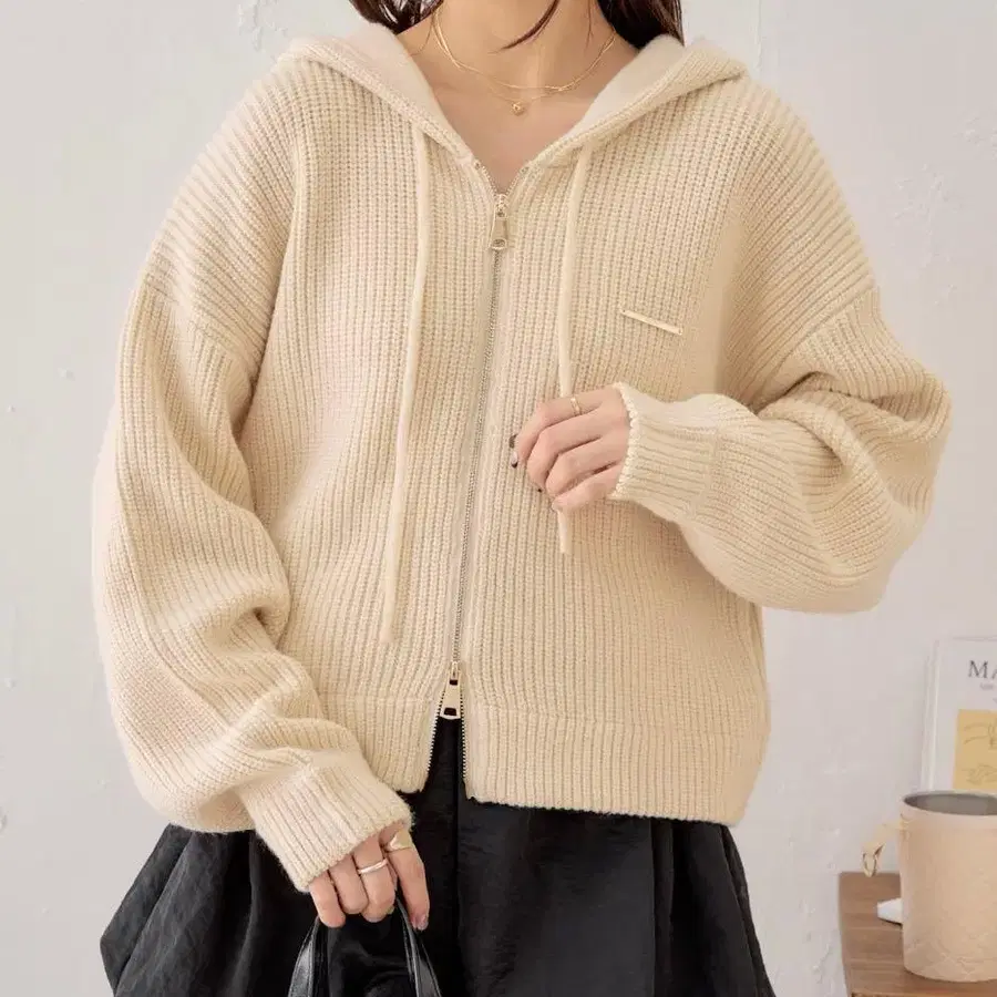 (완판 아이템) 후드 리브 니트 아우터 새상품급