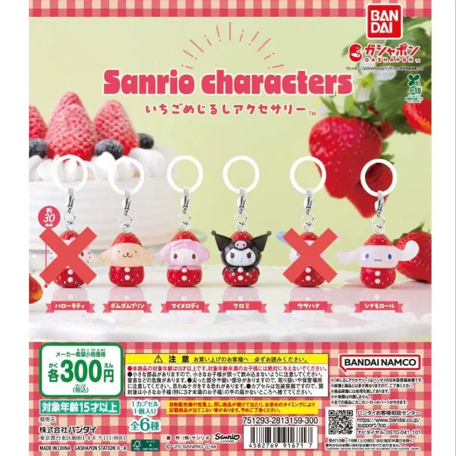 산리오 캐릭터 딸기 메지루시 키링 4개 세트