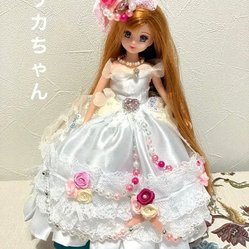 리카짱 옷 갈아입기 의류 화이트 드레스 꽃 장식 포함