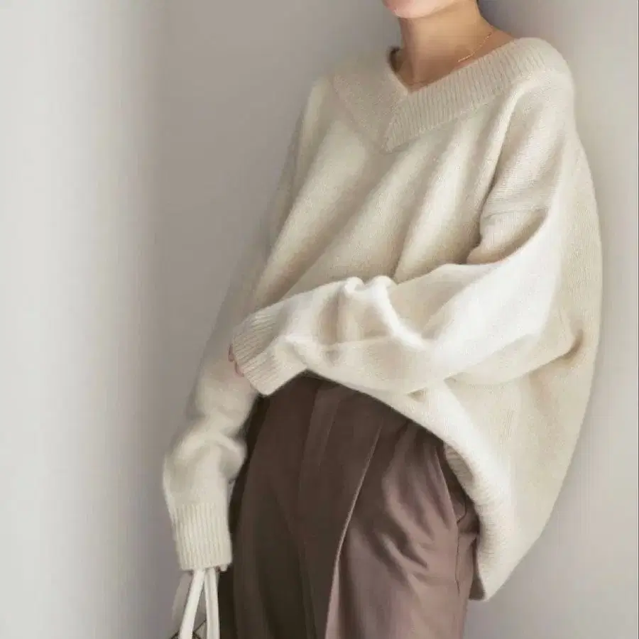 [택 포함 새상품] NOBLE YAK 야크 와이드 V넥 니트 화이트
