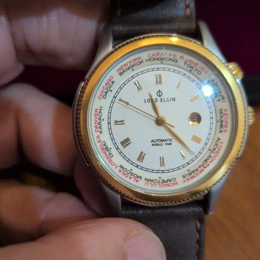 로드 엘진 자동 와인딩 월드 타임 손목시계