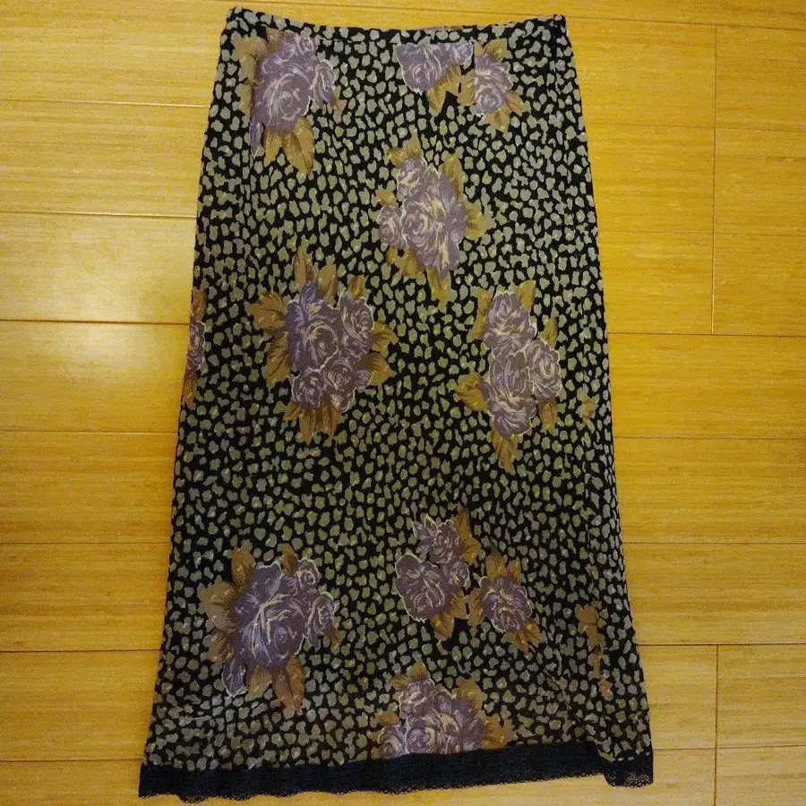 플레어 스커트 블랙 베이스에 보라색 장미 40