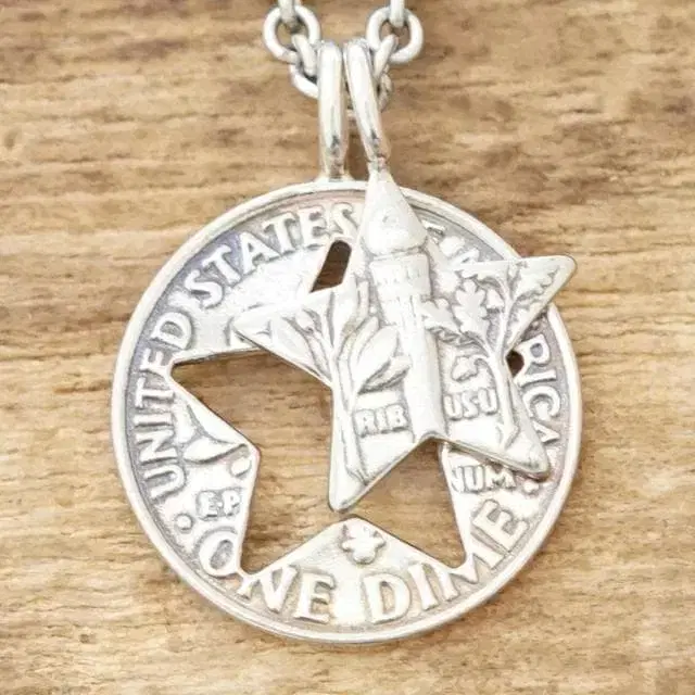다임 코인을 스타 형태로 컷 아웃하고, 컷한 스타에 바티칸을 붙여 겹쳐 만든 2탑 목걸이.