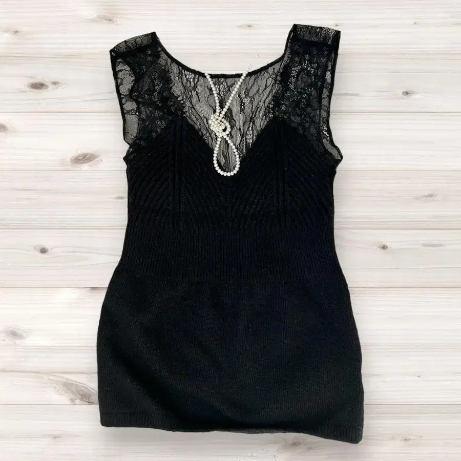 SNIDEL 블랙 레이스 니트 탱크 블랙 프리