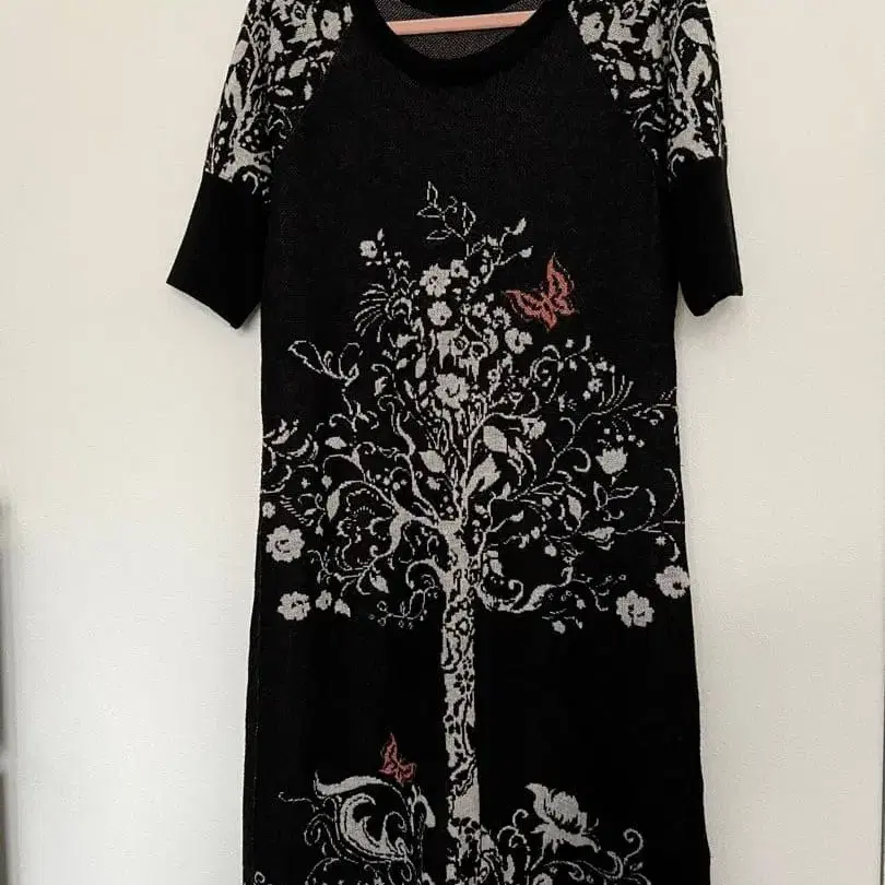 나무 모티브 패턴, 반팔 무릎 기장 원피스
