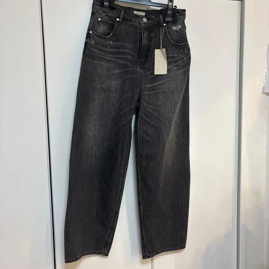 세븐 페어리 다크 그레이 루즈핏 커브 데님 팬츠