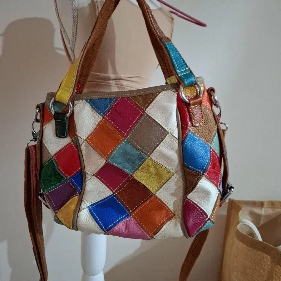 멀티 컬러 다이아몬드 패턴 백