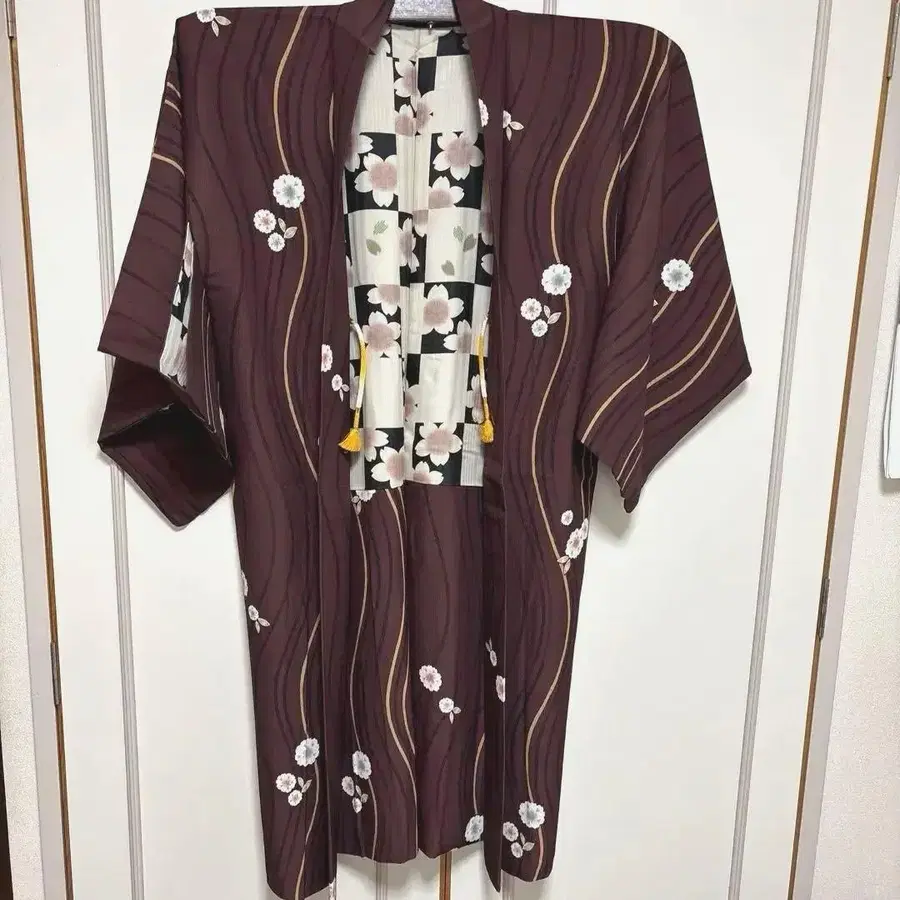 롱 겉옷 브라운색의 어긋난 무늬와 꽃무늬 화장 68cm
