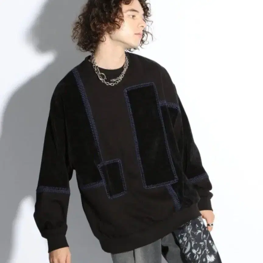 새상품급 [HARE] 이소자이 절개 스티치 맨투맨 블랙