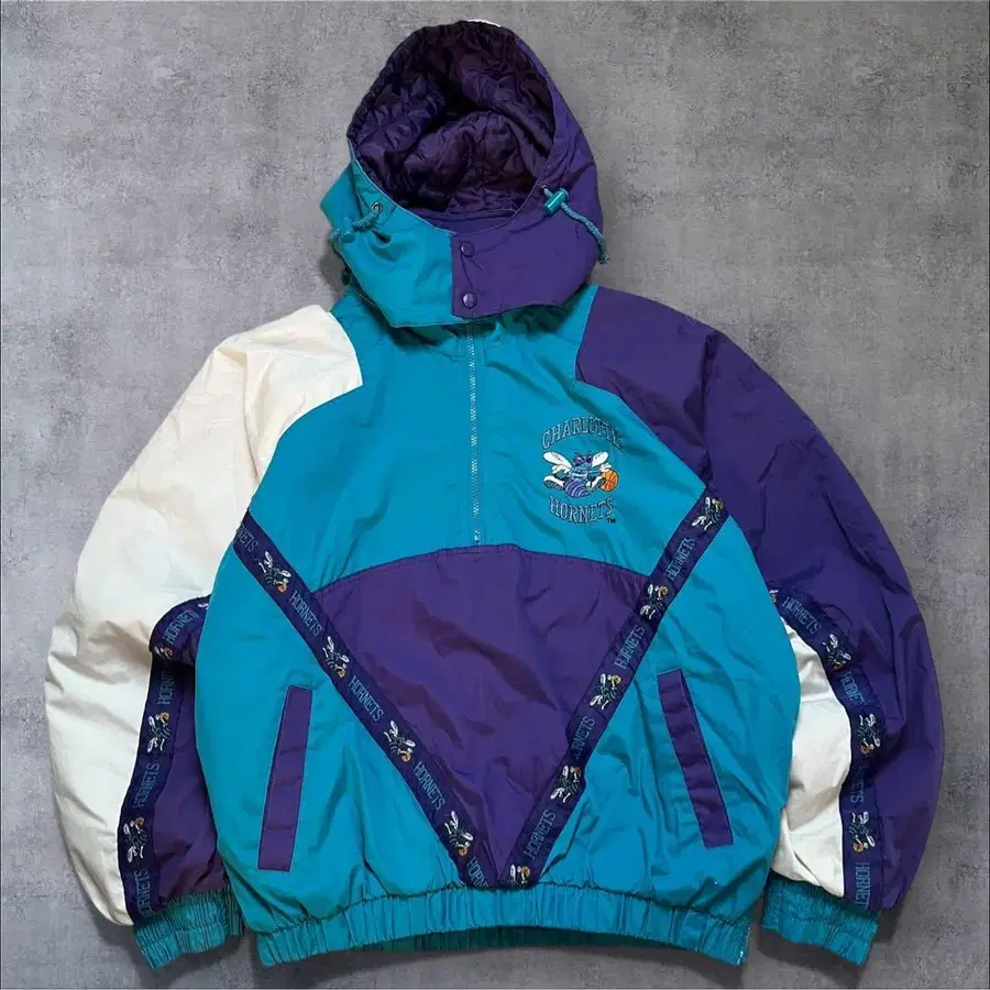 90s NBA 호넷츠 충전솜 아노락 후드티 자수 라인 디자인