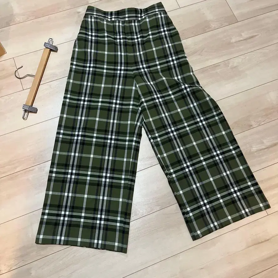 MACPHEE 체크 무늬 와이드 팬츠 올리브 그린 울