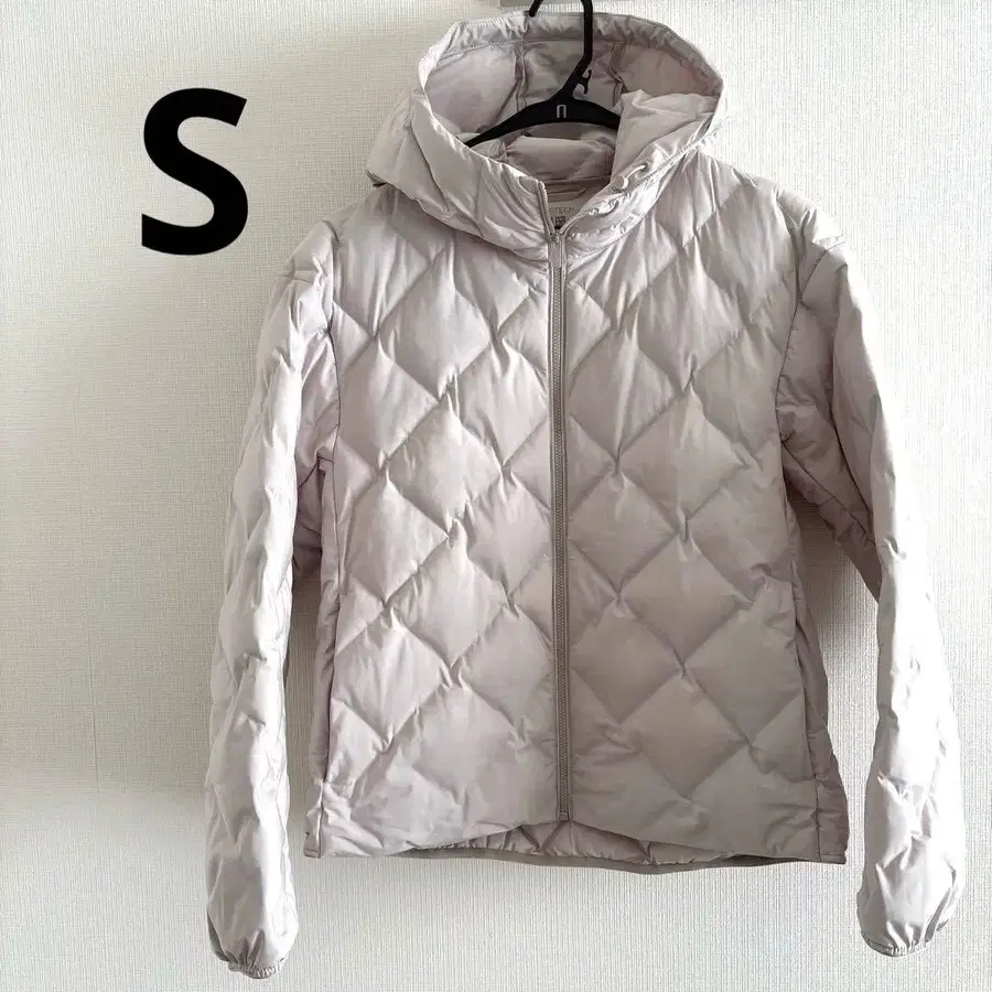 유니클로 퍼프 테크 다운 후드티 화이트 S