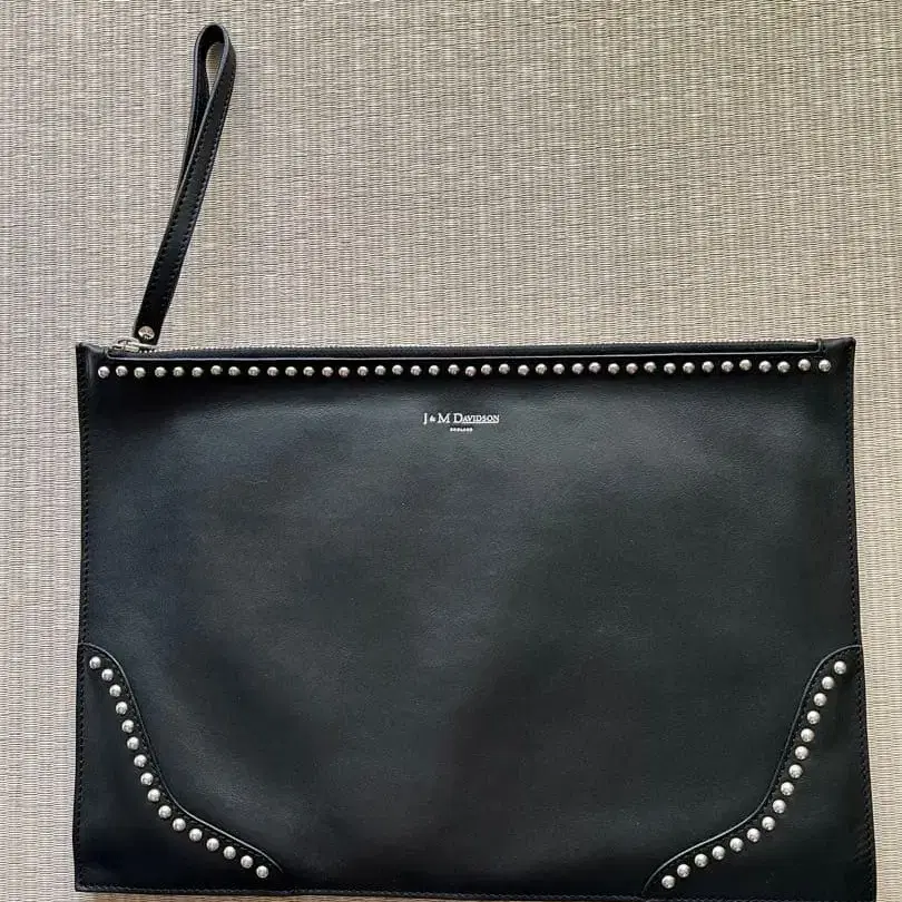 J&M DAVIDSON 블랙 가죽 클러치백 드로어 별주