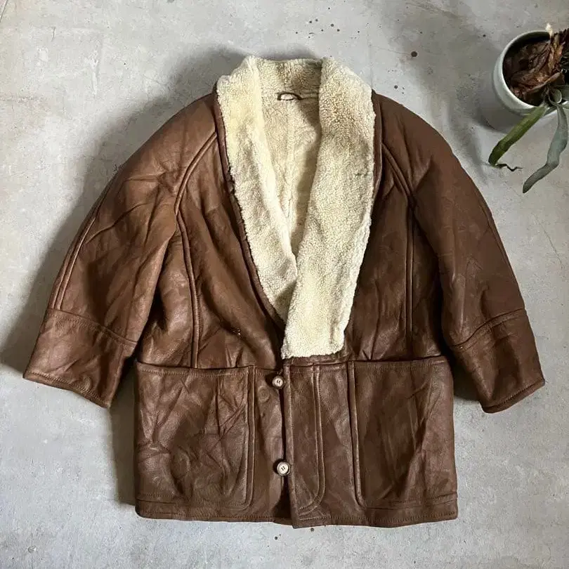 빈티지 70s 브라운 가죽 퍼 자켓 미국 USA 구제 의류