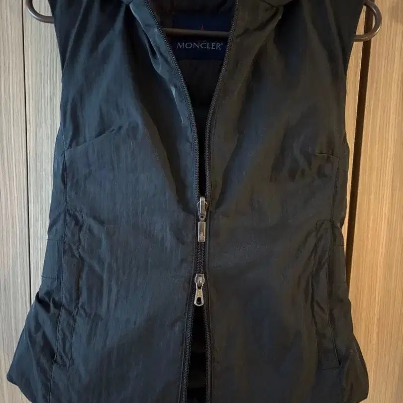 MONCLER 블랙 리버서블 다운 베스트 후드 부착