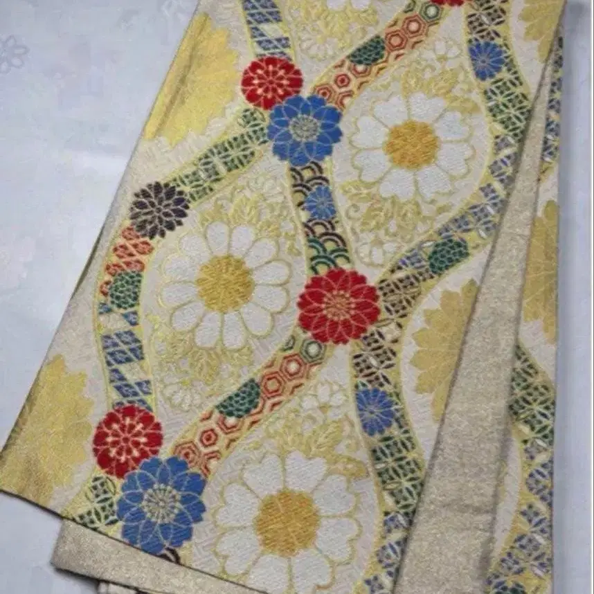 • A 기모노 편안함 꽃무늬 은사 순수 실크 육통 후쿠로 오비 O42