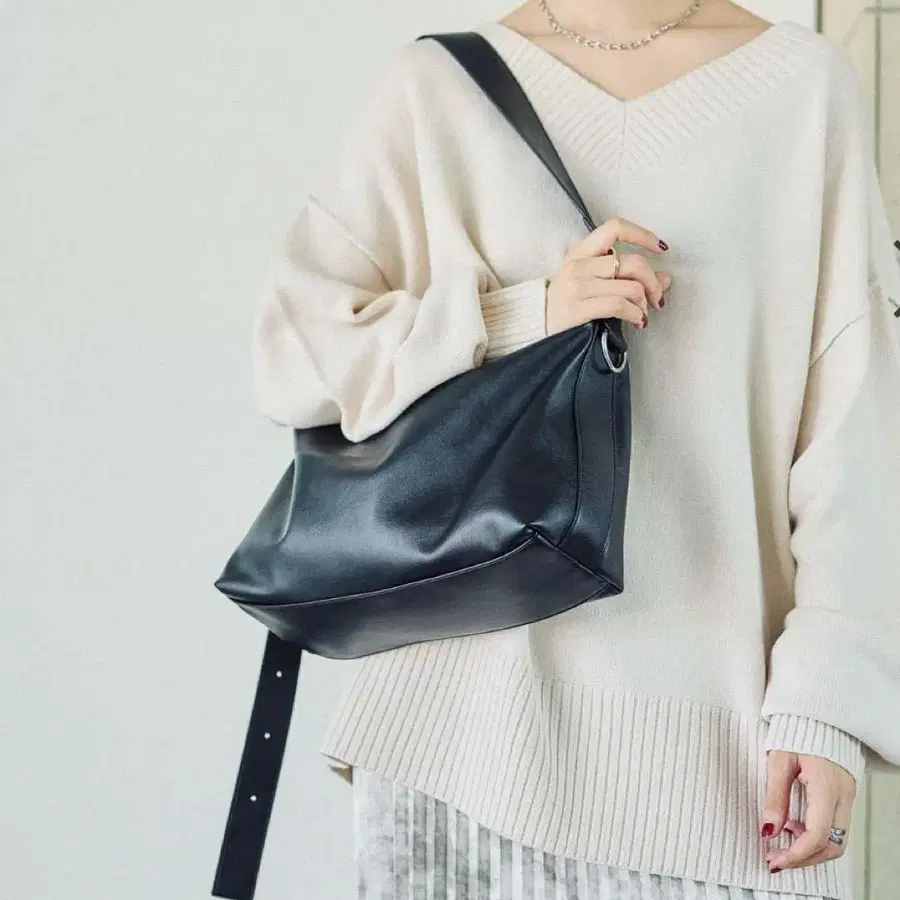LEPSIM 인조 가죽 스퀘어 숄더백 블랙
