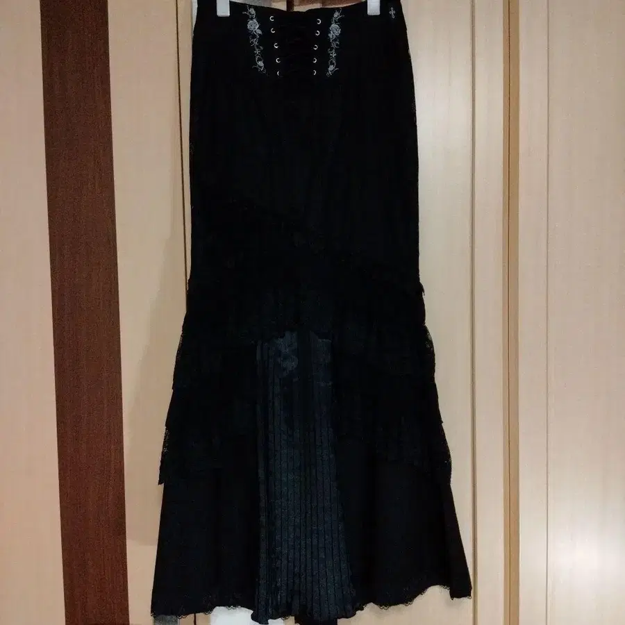 OzzCroce 레이스 장식 블랙 롱 스커트