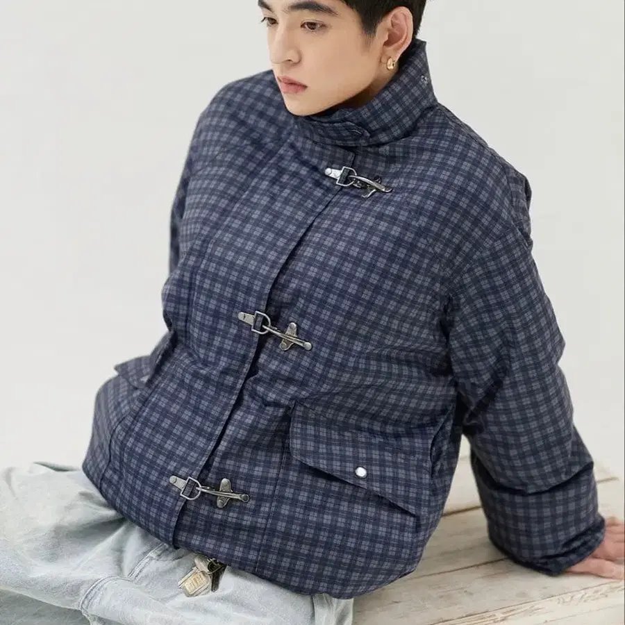 Bleme 파이어맨 자켓 네이비 체크 무늬