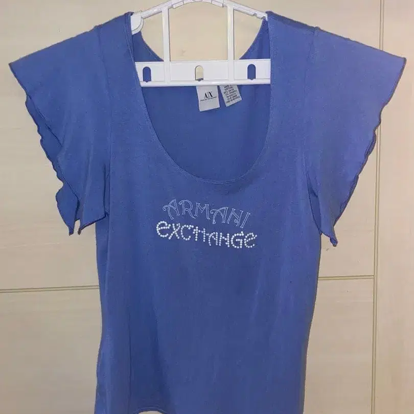 Armani Exchange 프릴 소매 티셔츠 L 파랑