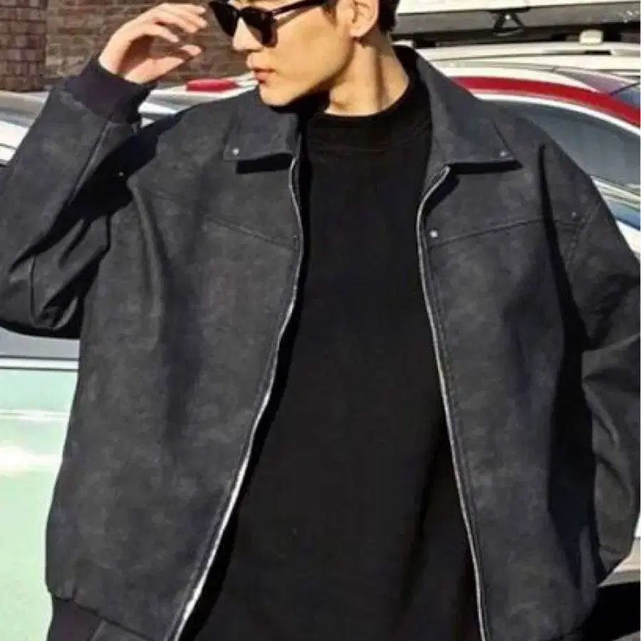 빅 실루엣 앤티크 디자인 PU 소재 블루종